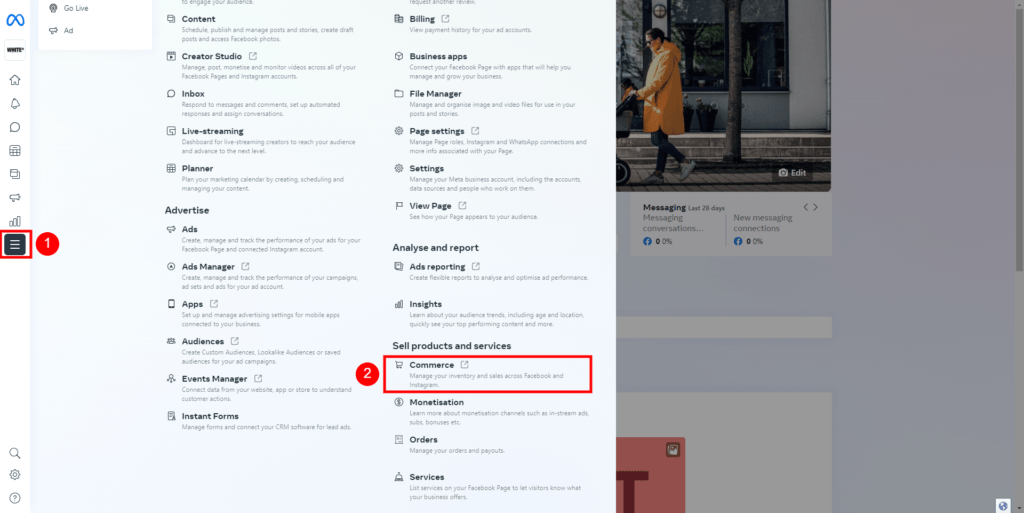 1. At first, go to the business.facebook.com, then from the all tools menu go to commerce.